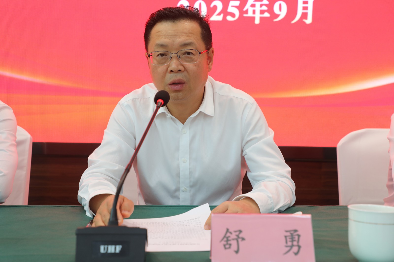 新任党委副书记、总经理谢建国,副总经理陈文兵分别作表态发言,表示服从组织决定,勤勉务实工作,以实际行动践行自己的职责和使命。
